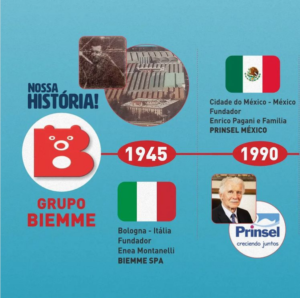 ▶️ Em 1990, a expansão do Grupo Biemme no México, com a criação da Prinsel na Cidade do México, fundada por Enrico Pagani e família.